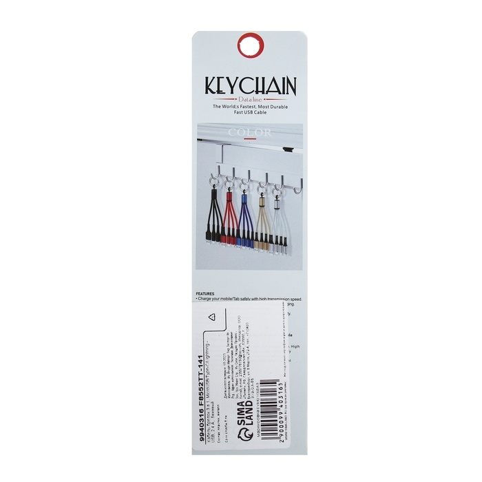 Кабель брелок 3 в 1, MicroUSB/Type-C/Lightning - USB, 2.4 А, бежевый
