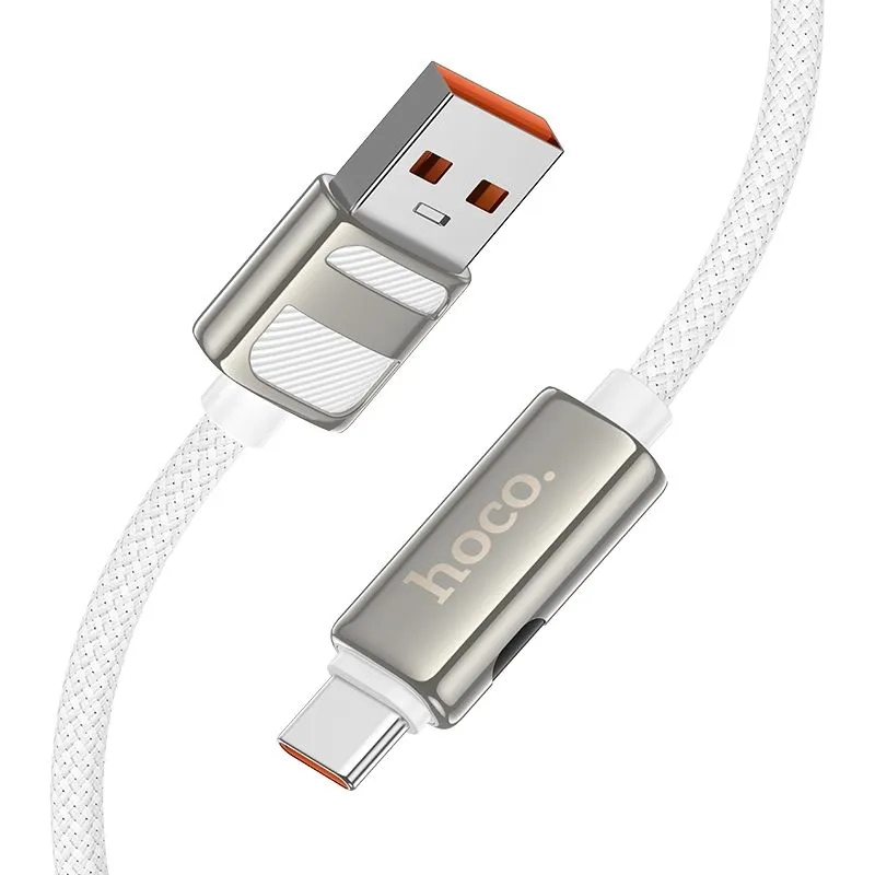Кабель для быстрой зарядки, HOCO, 5A, 66W, Type-C- USB с дисплеем, белый, 1.2м