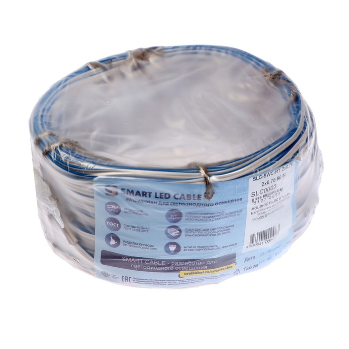 Кабель "Мастер Тока" SLC SWC (NT), сечение 2x0.75 мм2, 50 м, бело-синий