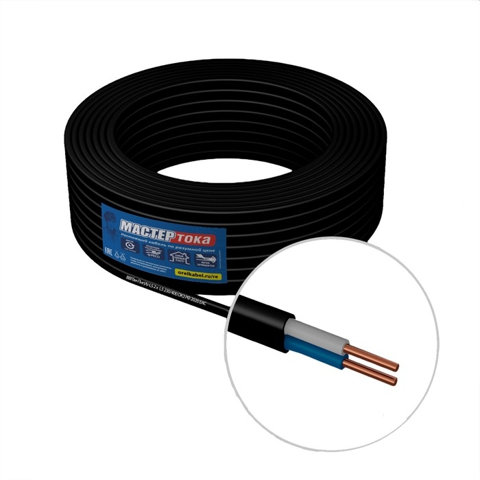 Кабель "Мастер Тока" ВВГбм-Пнг(A)-LS, сечение 2х2.5 мм2, 50 м, черный