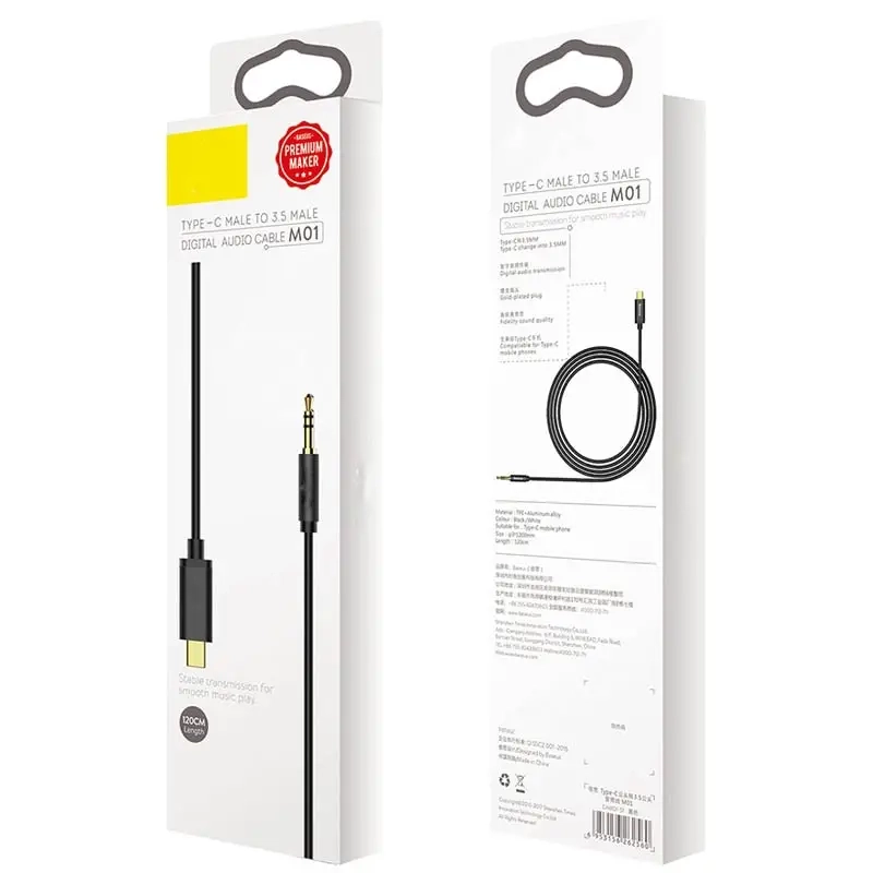 Кабель Type-C на AUX 1.2м M01 Baseus черный CAM01-01