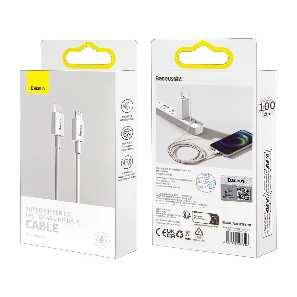Кабель Type-C на Lightning 1m 20W Cable Baseus белый CATLYS-A02