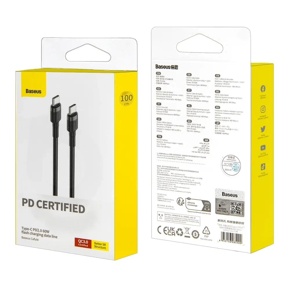 Кабель Type-C на Type-C 1M 3A Cafule series Baseus черный CATKLF-GG1