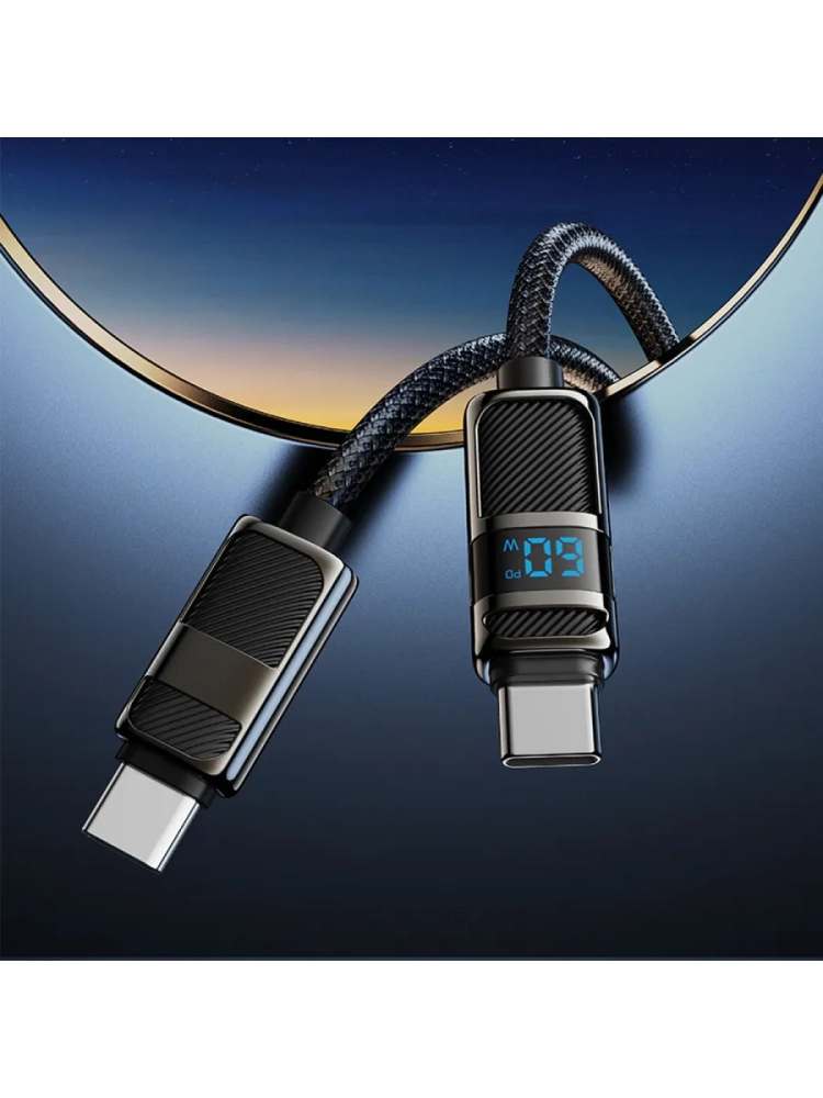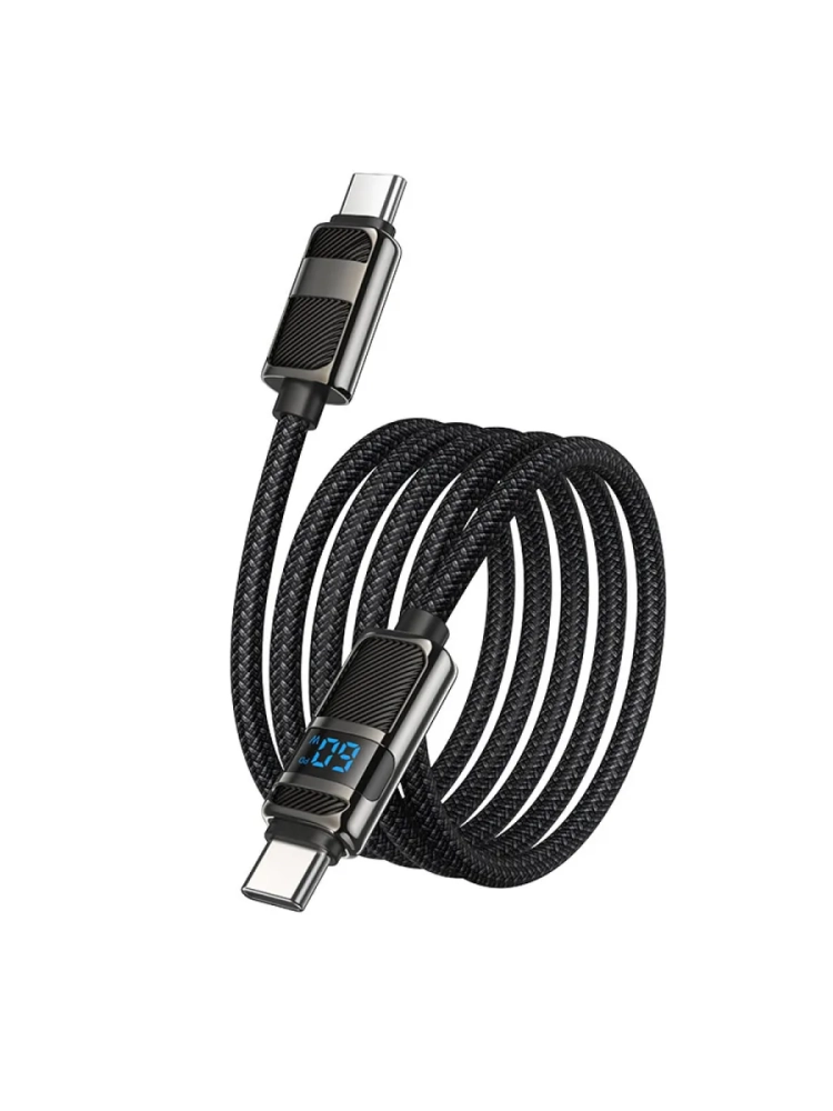 Кабель HOCO U137 — это качественный и надёжный кабель типа «Type-C на Type-C» длиной 1,2 метра и весом 34 грамма. Он оснащён дисплеем и выполнен в чёрном цвете.