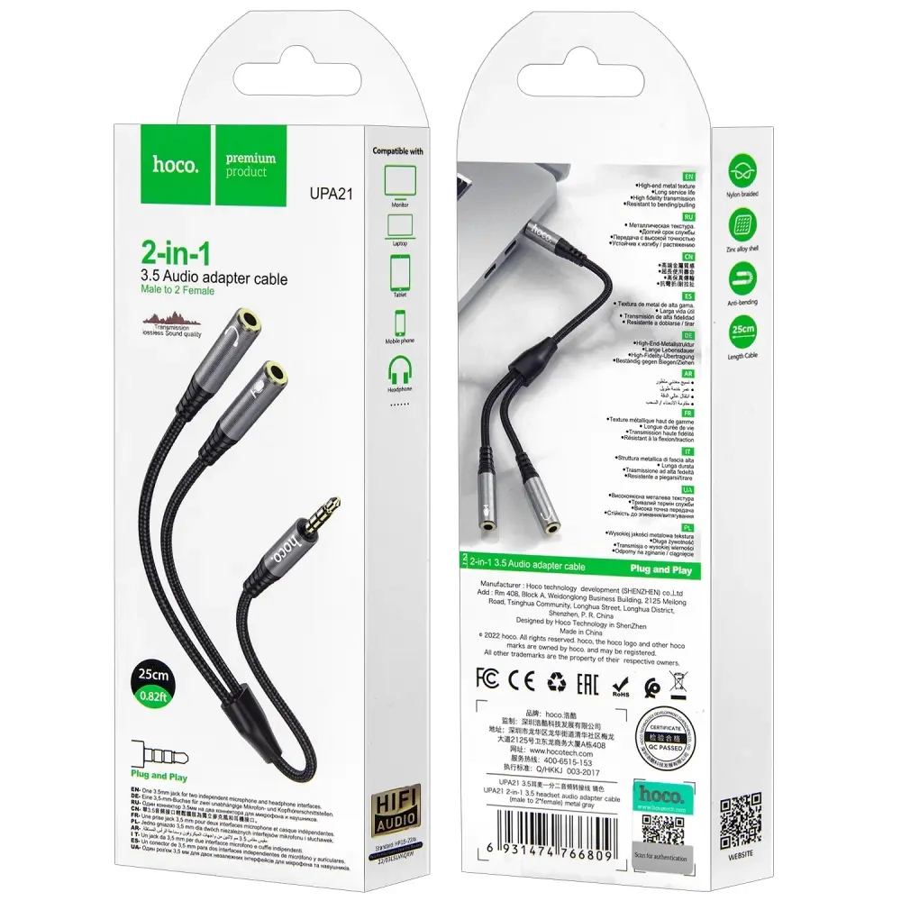 Кабель UPA21 AUX 0,25м 3,5 jack на 2 3.5 jackHoco