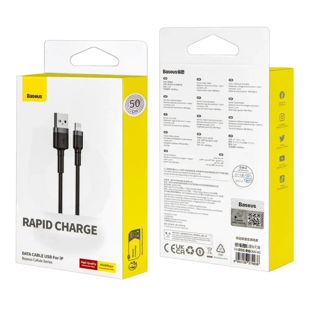 Кабель USB Lightning 0.5m 2.4A Cafule Cable Baseus черный CALKLF-AG1