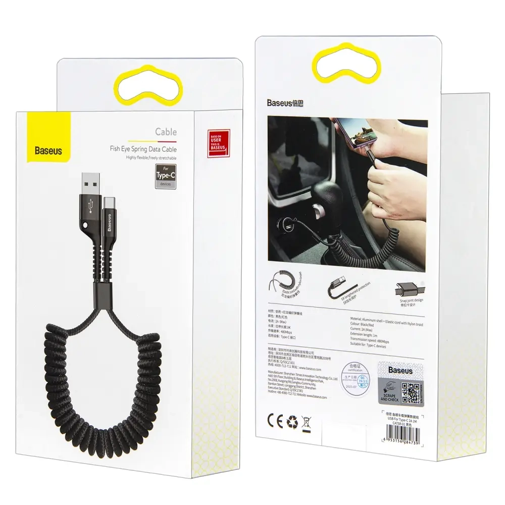 Кабель USB Type-C 1M 2A Fish Eye Spring Data Cable Baseus черный CATSR-01