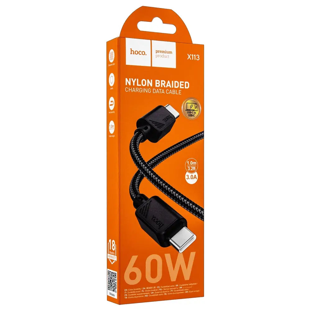 Кабель X113 Type-C на Type-C 1M 3A 60W HOCO черный