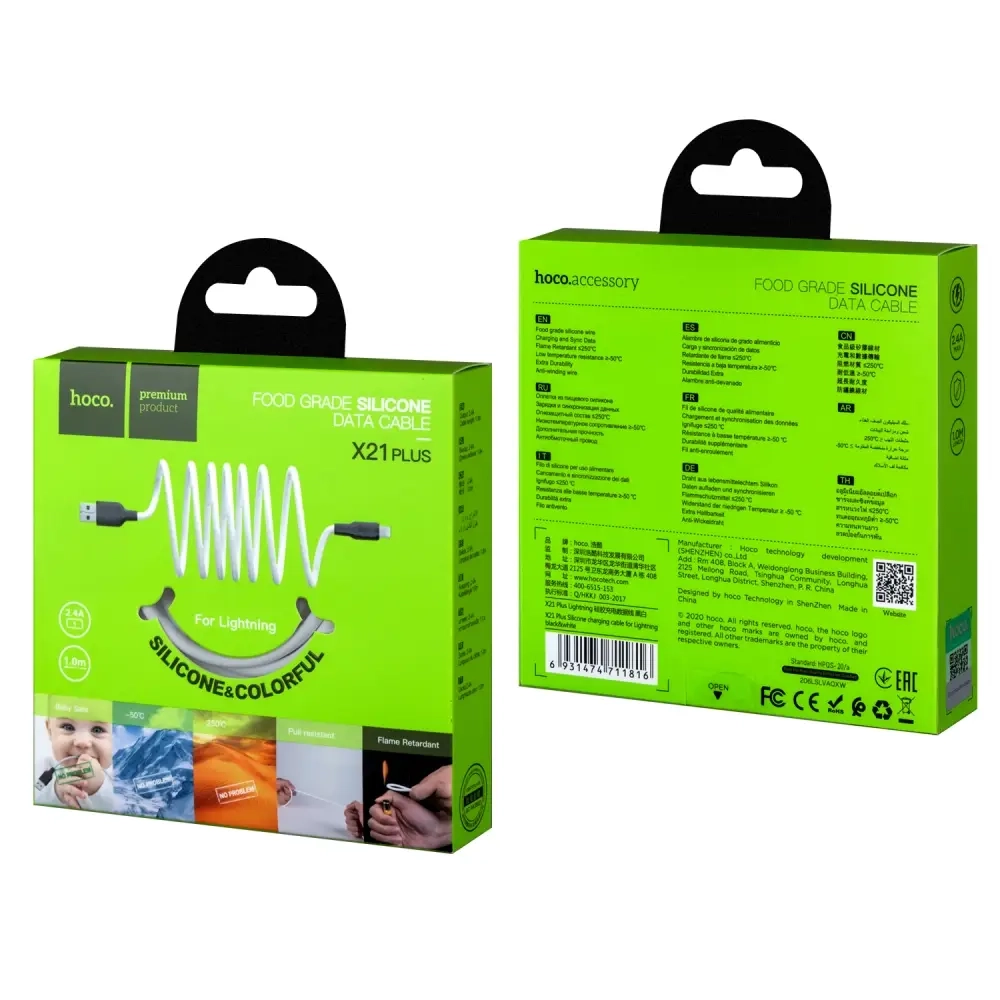 Кабель X21 Plus USB на Lightning 1M 2.4A HOCO черно-белый