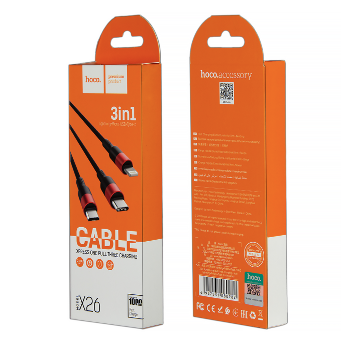 Кабель X26 USB 3 в 1 (Micro + Lightning + Type-C)