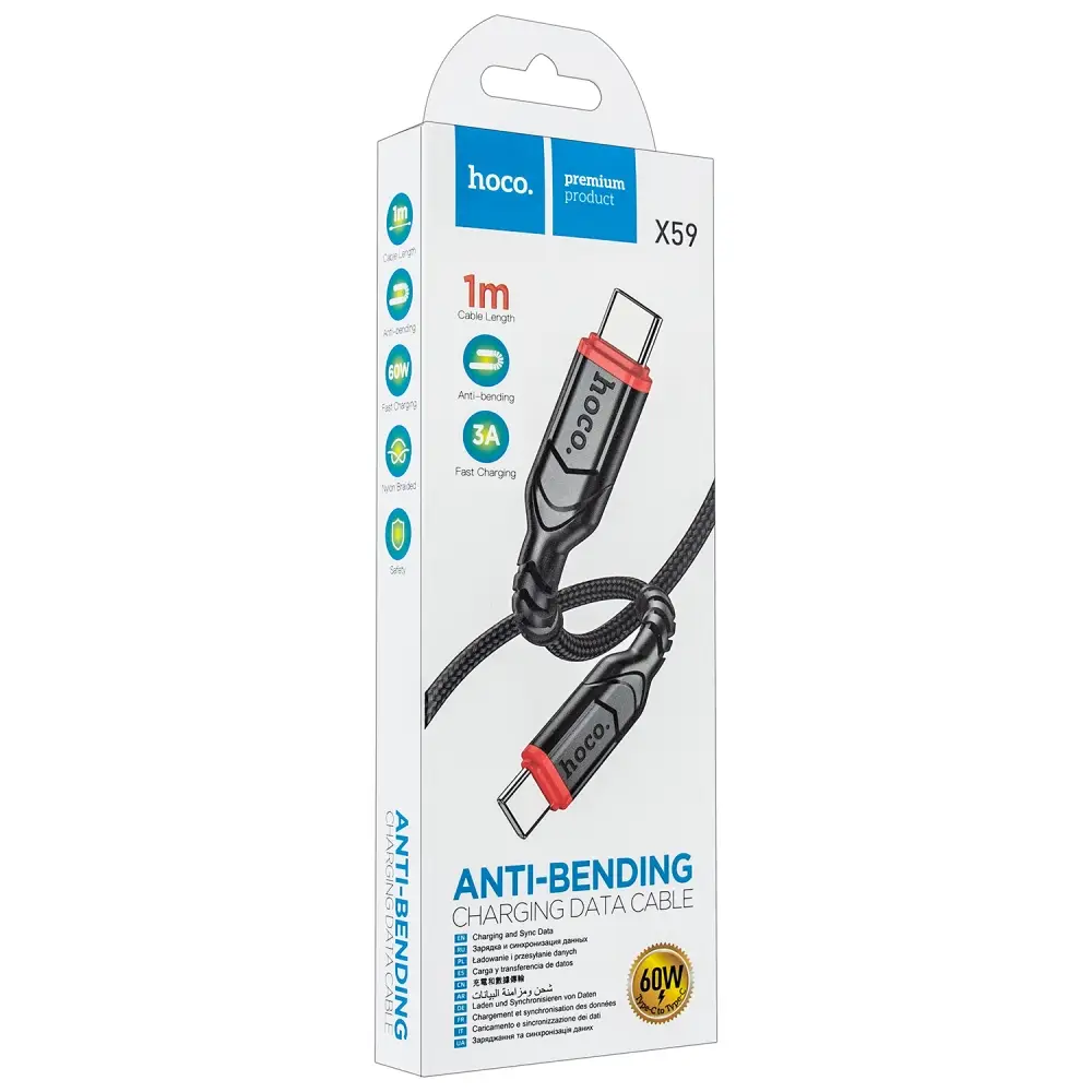 Кабель X59 Type-C на Type-C 1M 3A 60W HOCO черный