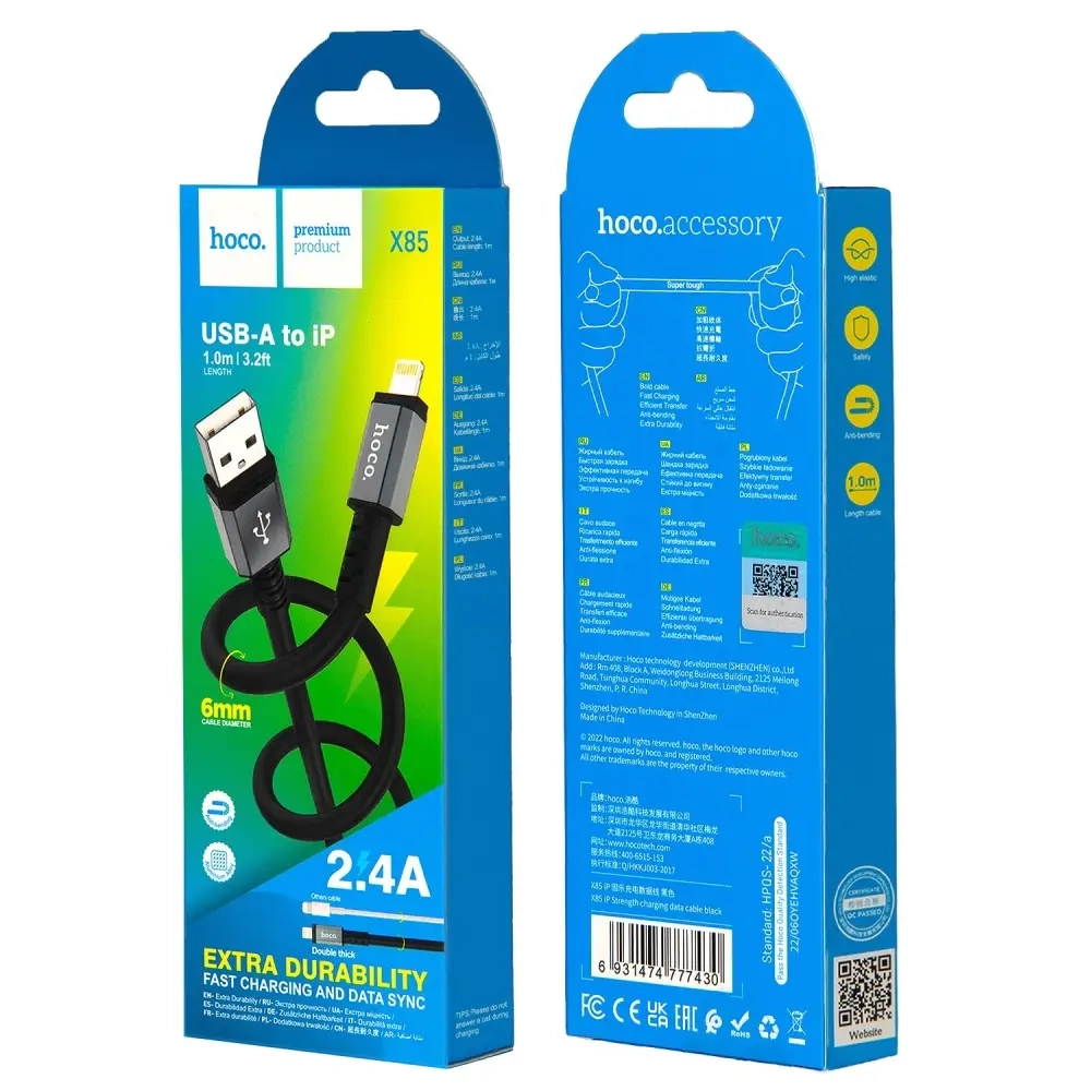 *Кабель X85 USB на Lightning 1M 2.4A HOCO черный