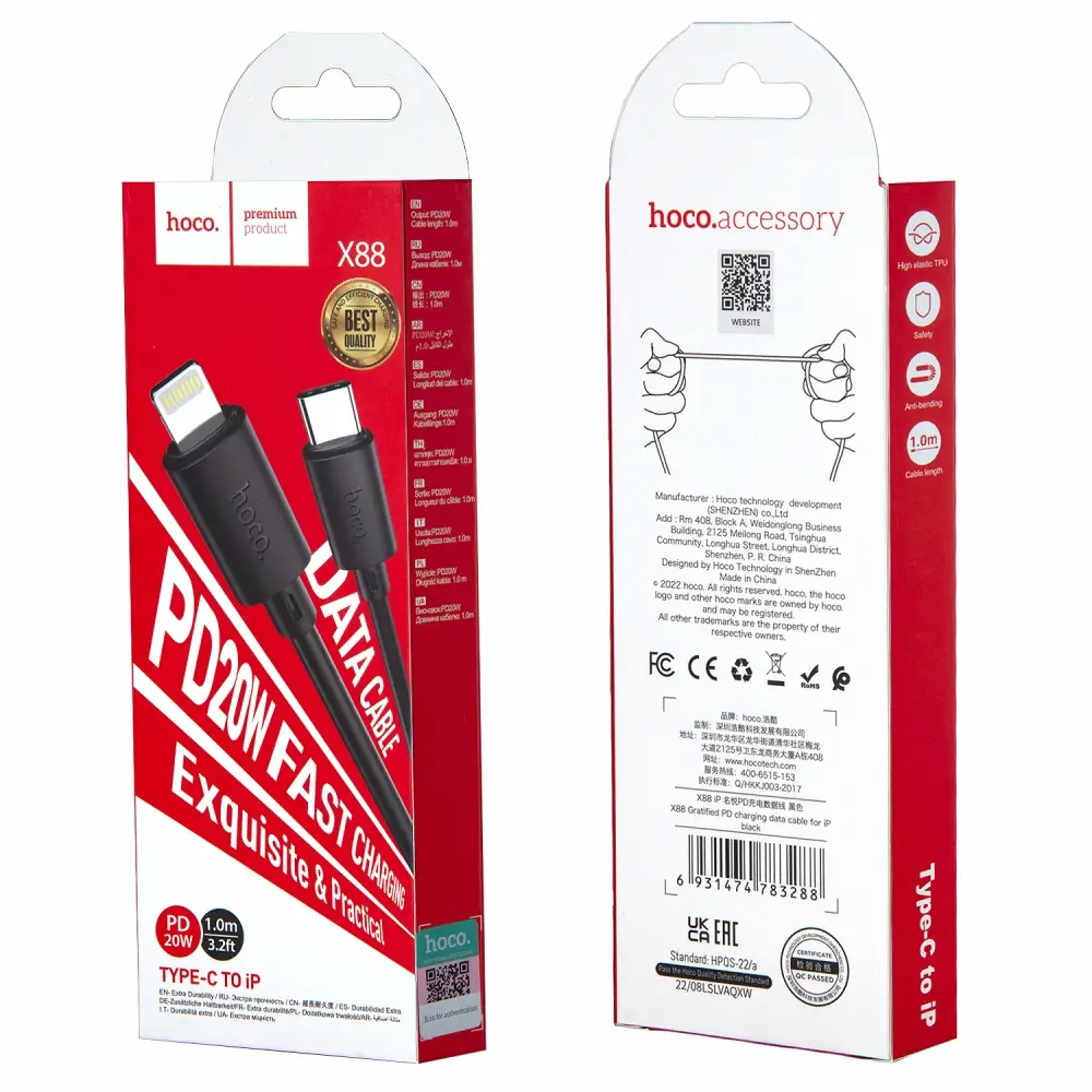 Кабель X88 Type-C на Lightning 1M 20W HOCO черный