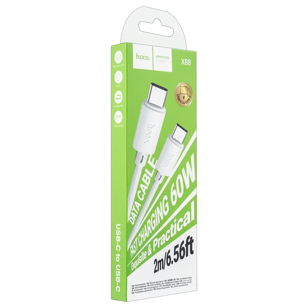 Кабель X88 Type-C на Type-C 2m 60W HOCO белый