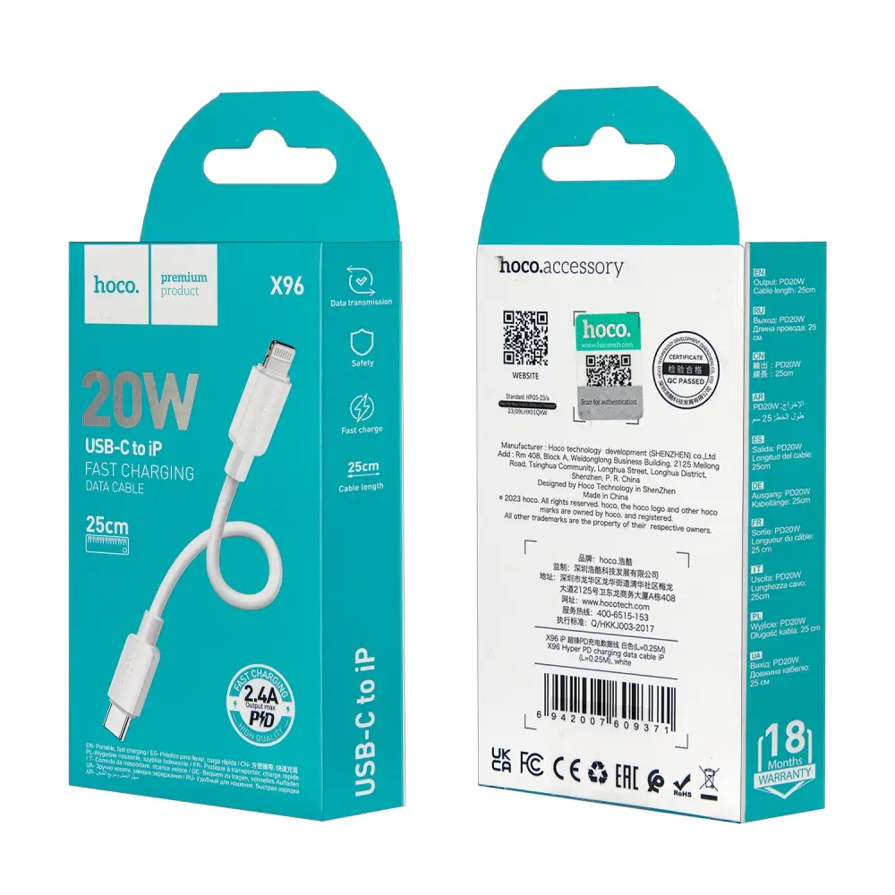 Кабель X96 Type-C на Lightning 0.25m 20W HOCO белый