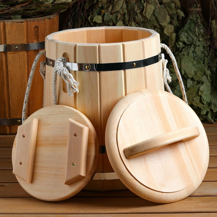 Кадка-бочка для засолки кедровая "ЛЮКС" с крышкой, ручка- верёвка, 10 л