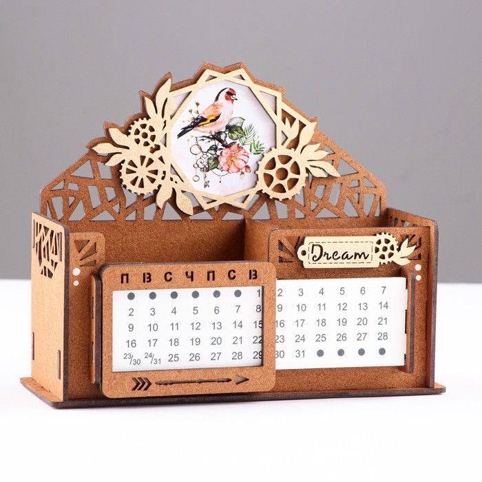 Календарь-карандашница "Птица", дуб-золото, мдф, 17х7,5х12 см