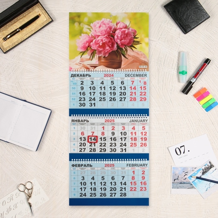 Календарь квартальный, трио "Нежные пионы" 2025 год, 73 х 29 см