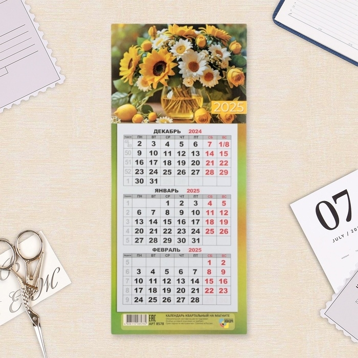 Календарь мини-трио "Солнечный букет" на магните, 2025 год, 24,5 х 11 см