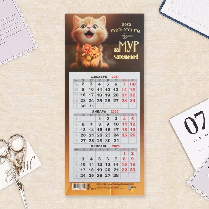 Календарь мини-трио "Замурчательный год" на магните, 2025 год, 24,5 х 11 см