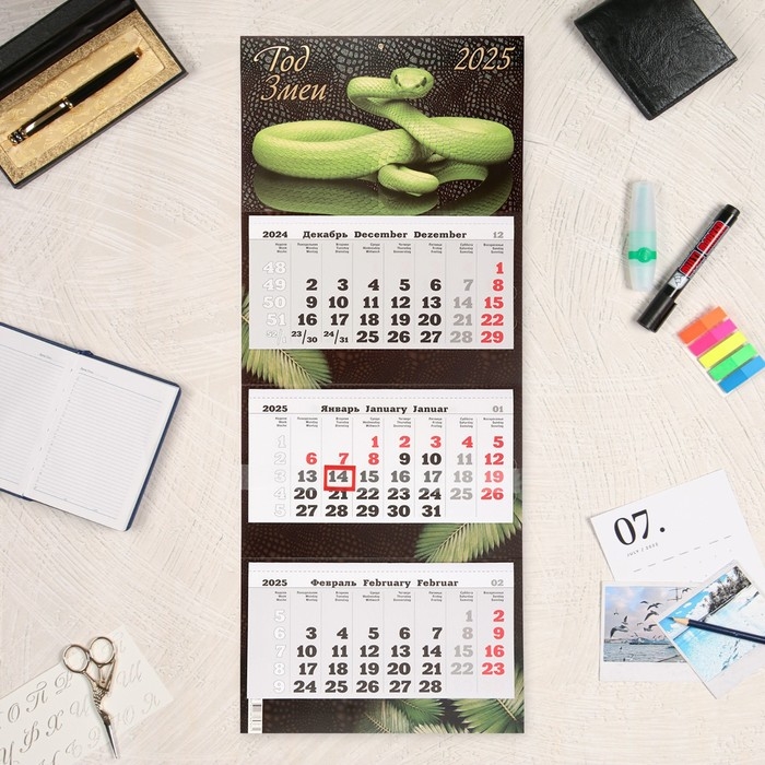 Календарь настенный квартальный Премиум трио "Символ года - 1" 2025 год, 34 х 84 см
