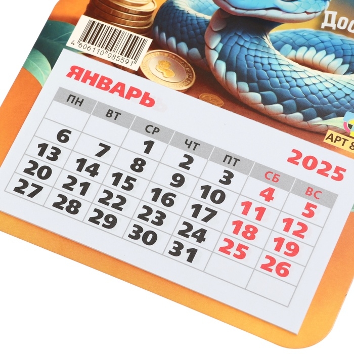 Календарь отрывной на магните "Достатка" символ года, 2025 год, 13 х 15,5 см