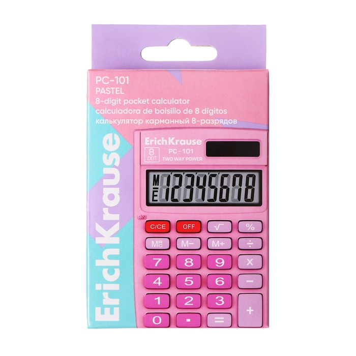 Калькулятор карманный 8-разрядов ErichKrause PC-101 Pastel, розовый