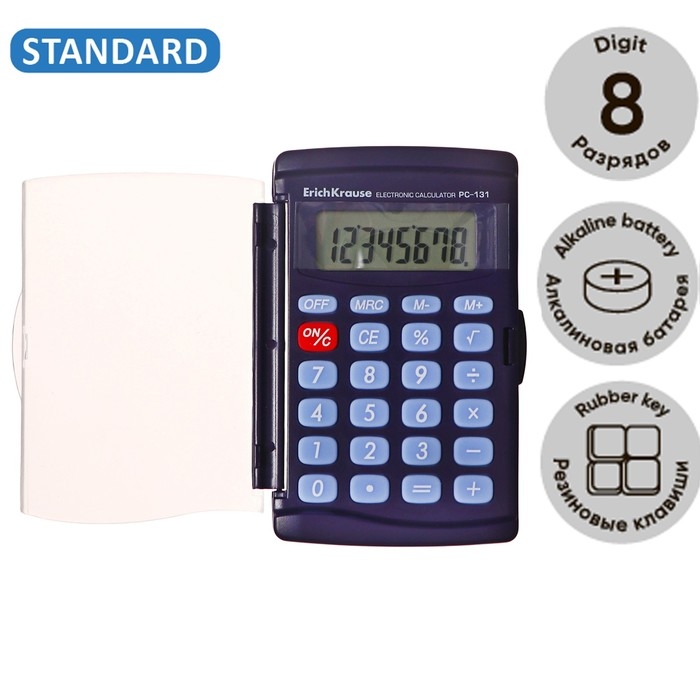 Калькулятор карманный 8-разрядов ErichKrause PC-131 Classic, синий