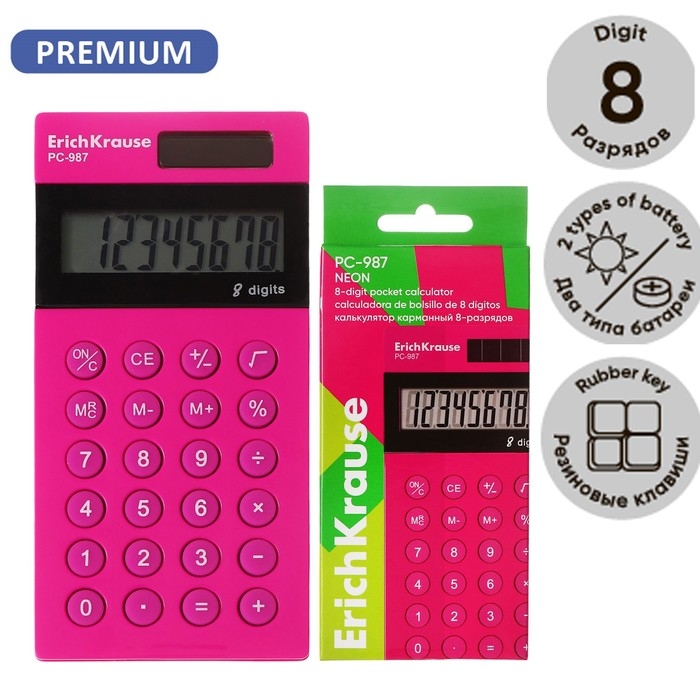 Калькулятор карманный 8-разрядов ErichKrause PC-987 Neon, розовый