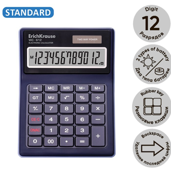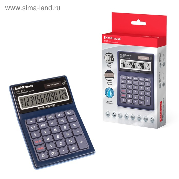Калькулятор настольный 12-и разрядный ErichKrause WC-612, пыле-влагозащищенный