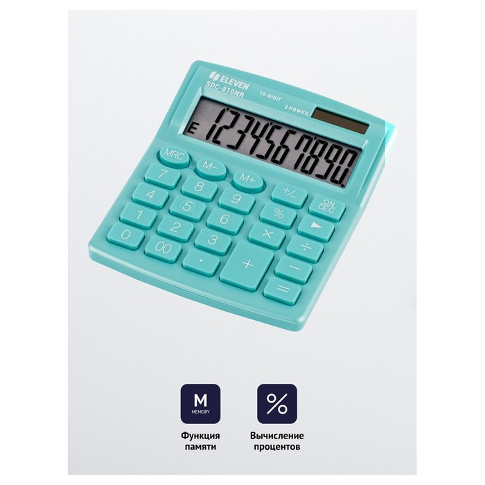 Калькулятор настольный Citizen "SDC-810NR", 10-разрядный, 124 х 102 х 25 мм, двойное питание, бирюзовый