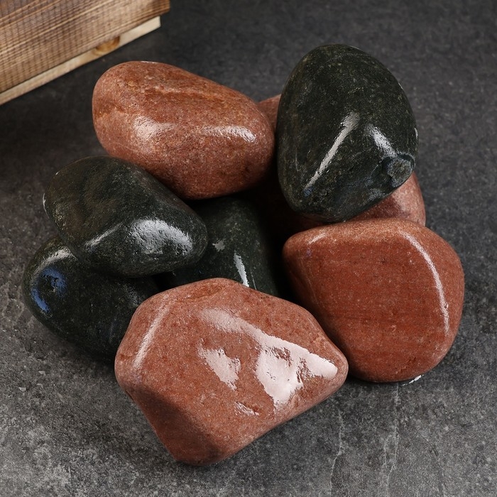 Камень для бани "Красное-Черное", малиновый кварцит и оливин Ящик 10 кг, фракция 70-120 мм