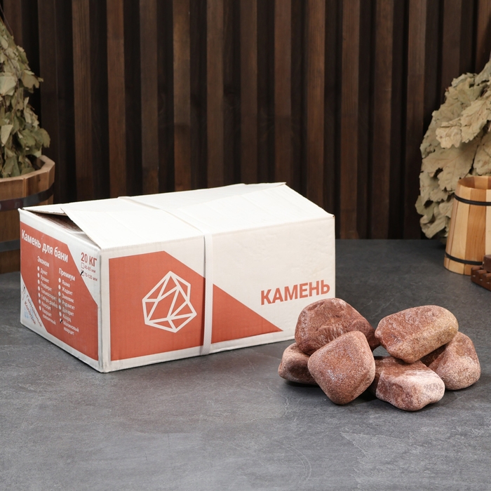 Камень для бани "Малиновый кварцит" галтованный 20 кг, фракция 70-120 мм
