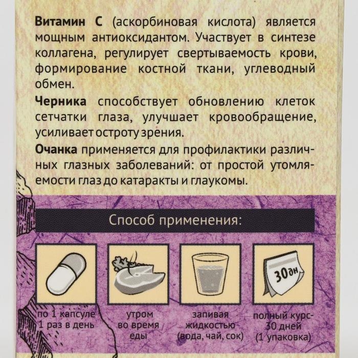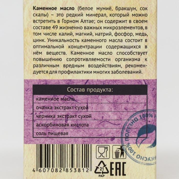 Состав: каменное масло, очанка, черника, аскорбиновая кислота.