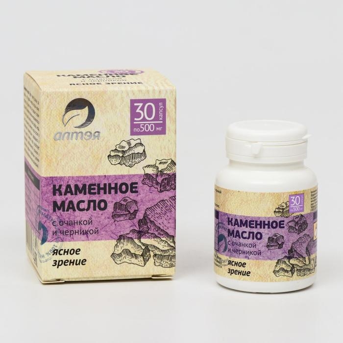 Каменное масло «Ясное зрение» с очанкой и черникой, 30 капсул по 500 мг