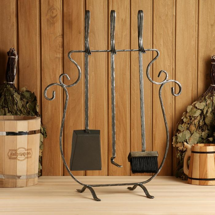 Каминный набор КН-6-20 кованый, цвет серебро, 3 предмета: кочерга, совок, метёлка