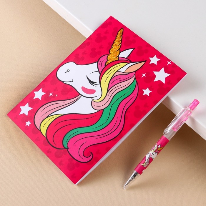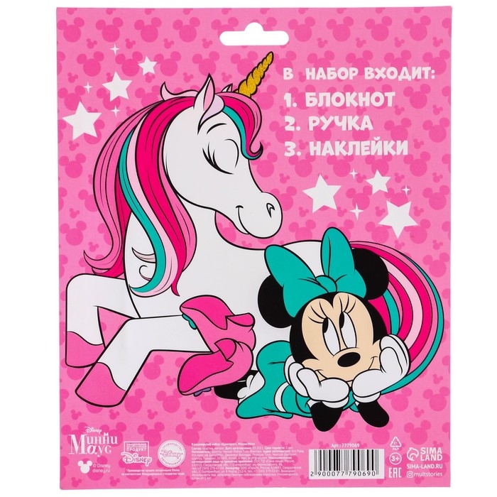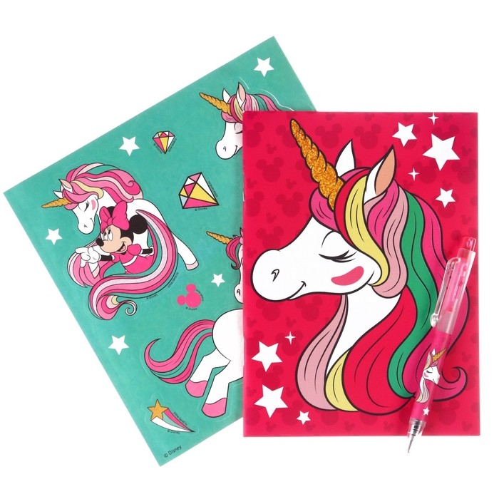 Канцелярский набор "Единорог", блокнот А6, ручка, наклейки, Минни Маус