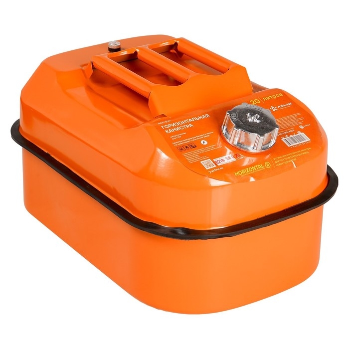 Автомобильные канистры для горючих жидкостей применяются, как дополнительная емкость для хранения топлива либо других технических/горючих жидкостей. Чаще всего они располагаются либо в багажном отделении, либо на борту автомобиля. Горизонтальная канистра Airline имеет самую устойчивую форму для транспортировки и хранения жидкостей. Такую канистру сложно опрокинуть. Канистра имеет металлическую крышку. Внутренняя поверхность обработана специальным составом против коррозии. В комплекте имеется специальный пластиковый носик для удобной заправки автомобиля.