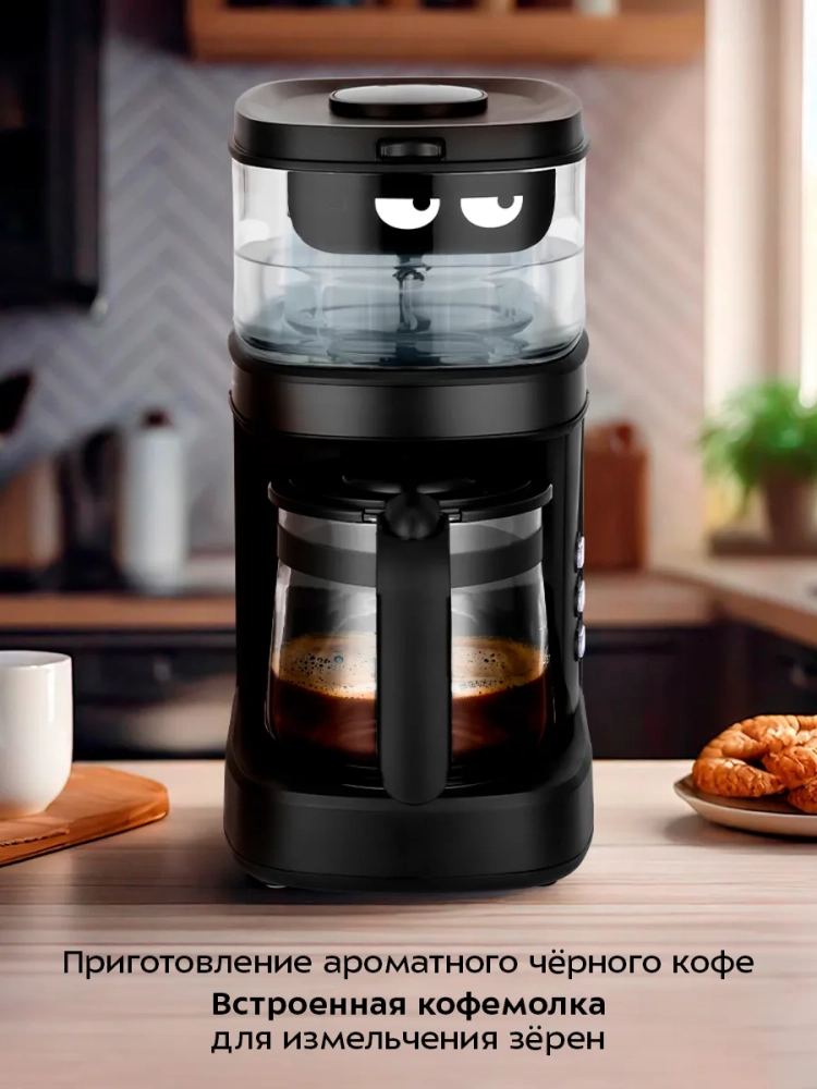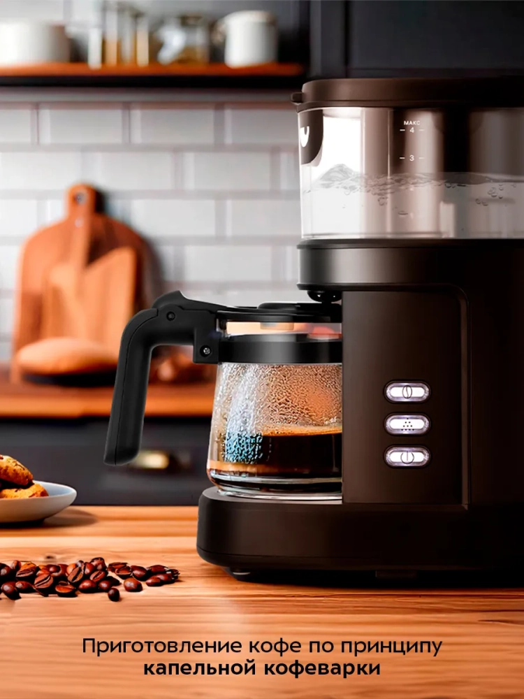 Капельная кофемашина Kitfort КТ-7496 готовит ароматный кофе из молотого кофе или из кофейных зерен. Встроенная роторная кофемолка автоматически измельчит кофейные зерна сразу в фильтре.