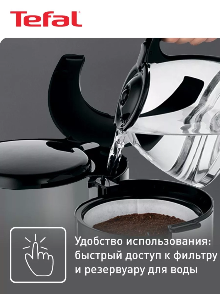 Кухонная техника имеет большой кувшин для воды объемом 1,25 л, с помощью которого вы сможете сварить до 15 чашек кофе всего лишь за один раз. Удобный индикатор уровня воды расположен на видном месте и позволяет следить за количеством воды в резервуаре. Кроме того, кофейный аппарат оснащен уникальной системой ""Капля-стоп"", которая останавливает подачу воды вовремя, предотвратив попадание капель кофе на подставку и на поверхность вокруг кофеварки. Специальный фильтр кофеварки с подогревом является многоразовым, поэтому не требует замены и легко моется под проточной водой.