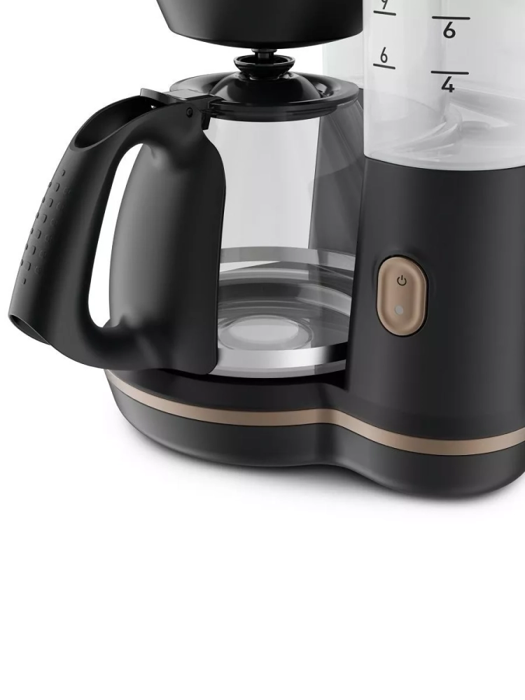 Кухонная техника для дома разработана для обеспечения максимального удобства и простоты использования в повседневной жизни. Простое открытие крышки одним нажатием на большую кнопку электрической кофеварки позволяет легко заправлять кофе и воду. Съемный держатель фильтра оснащен двумя ручками, что обеспечивает его легкую чистку и использование как правшами, так и левшами. Кроме того, кофейный аппарат вмещает до 1,25 литров воды, что позволяет приготовить до 15 чашек кофе для большой компании. Прозрачный резервуар с большими индикаторами уровня воды делает процесс заполнения еще более простым, а эргономичная ручка и широкое основание гарантируют удобство и устойчивость электрического кофейника.
