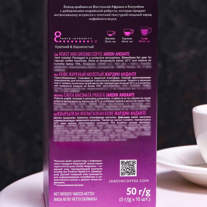 Откройте для себя коллекцию капсульного кофе Jardin и насладитесь эстетикой превосходного вкуса. Попробуйте полнотелый эспрессо Andante, плотный густой Ristretto, мягкий эспрессо Vivo с деликатной кислинкой, а также идеально сбалансированный лунго Allonge, и побалуйте себя кофе с бархатистым ароматом ванили.
