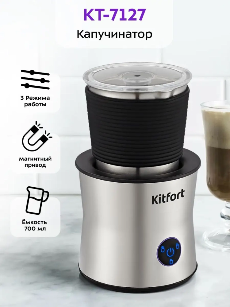 Капучинатор Kitfort КТ-7127 — это устройство для приготовления молочной пенки, используемой для напитков на базе эспрессо: капучино, латте и латте макиато. Прибор работает в 3 режимах: молочная пенка с нагревом и без нагрева, а также смешивание с нагревом.