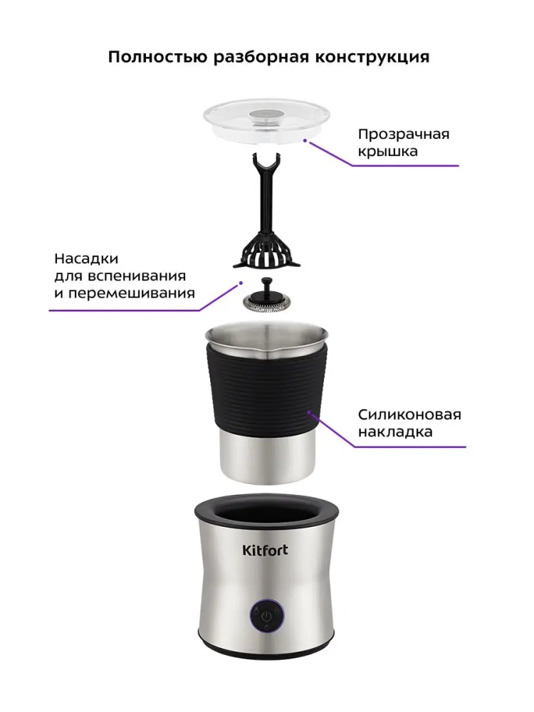 Капучинатор Китфорт КТ-7127 — идеальный выбор для тех, кому не хочется осваивать процесс самостоятельного взбивания молока, следить за температурой, добиваться вручную плотной однородной пены. Достаточно наполнить капучинатор нужным количеством молока и выбрать режим. Через несколько минут холодная или горячая молочная пена готова. Так же в капучинаторе можно готовить какао или просто подогреть молоко.