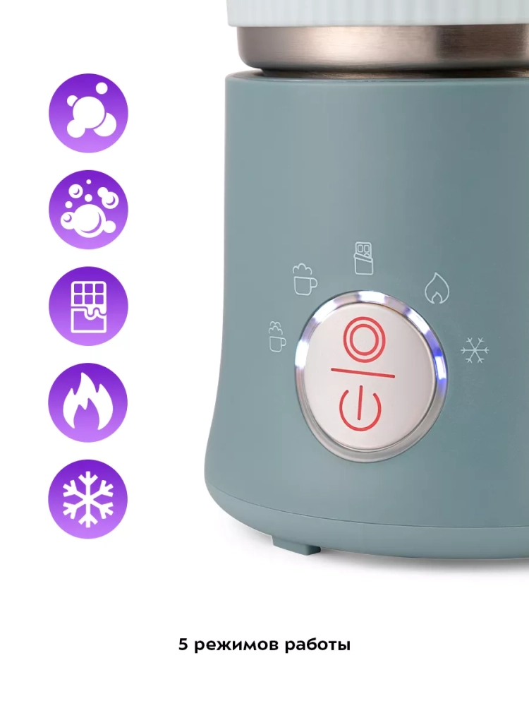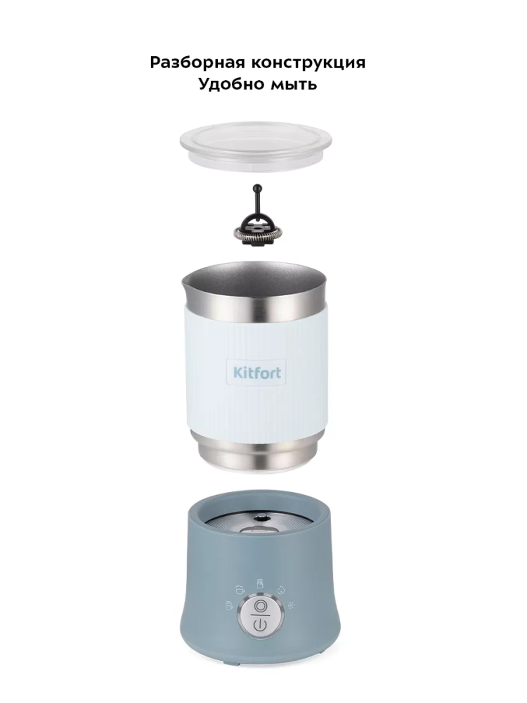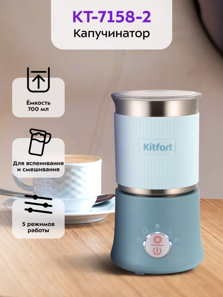Капучинатор Kitfort КТ-7158 — это устройство для приготовления молочной пенки, используемой для напитков на базе эспрессо: капучино, латте и латте макиато. Прибор работает в 5 режимах: молочная пенка с подогревом и без подогрева, а также смешивание с подогревом, вспенивание без подогрева и приготовление горячего шоколада.
