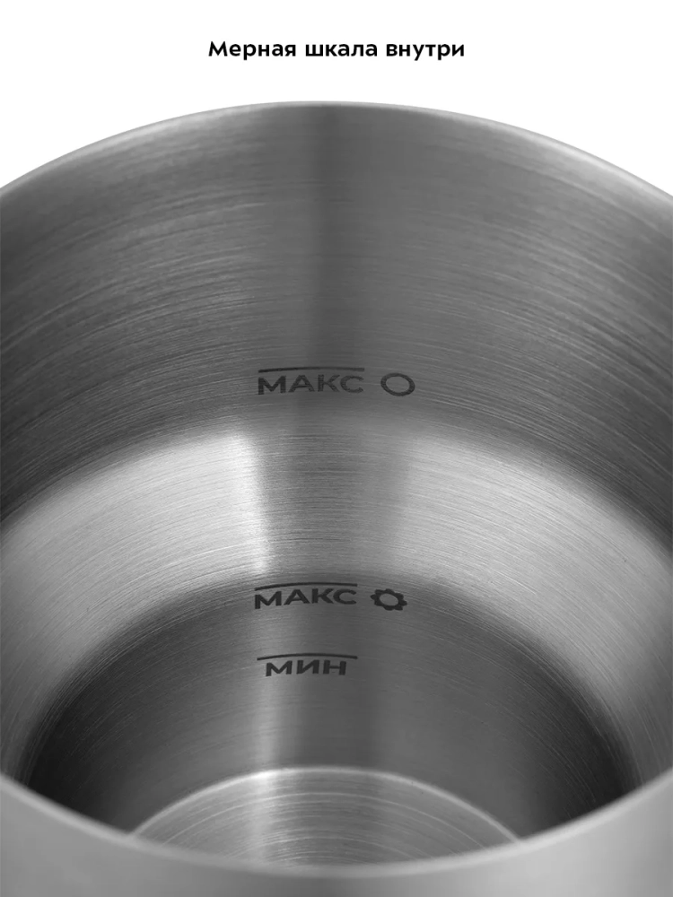 Питчер изготовлен из нержавеющей стали. Ручка питчера пластиковая, не нагревается и удобно лежит в руке. В комплекте одна насадка с пружинкой.