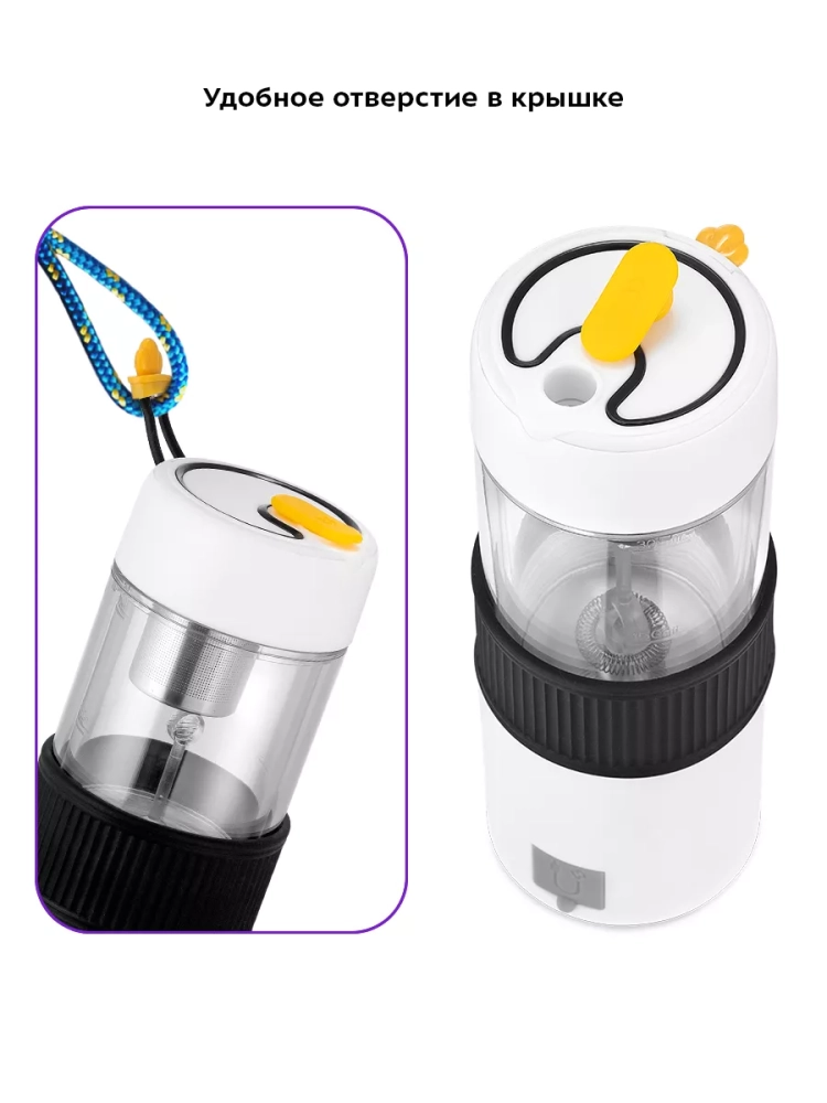 Благодаря большому количеству режимов работы вы сможете заменить сразу несколько устройств одним компактным капучинатором КТ-7408. Силиконовая вставка на корпусе не даст вам обжечься или выронить из рук устройство. Отверстие в крышке позволяет удобно наливать получившийся напиток в чашку. Для удобной переноски у капучинатора есть шнурок, который убирается в крышку.