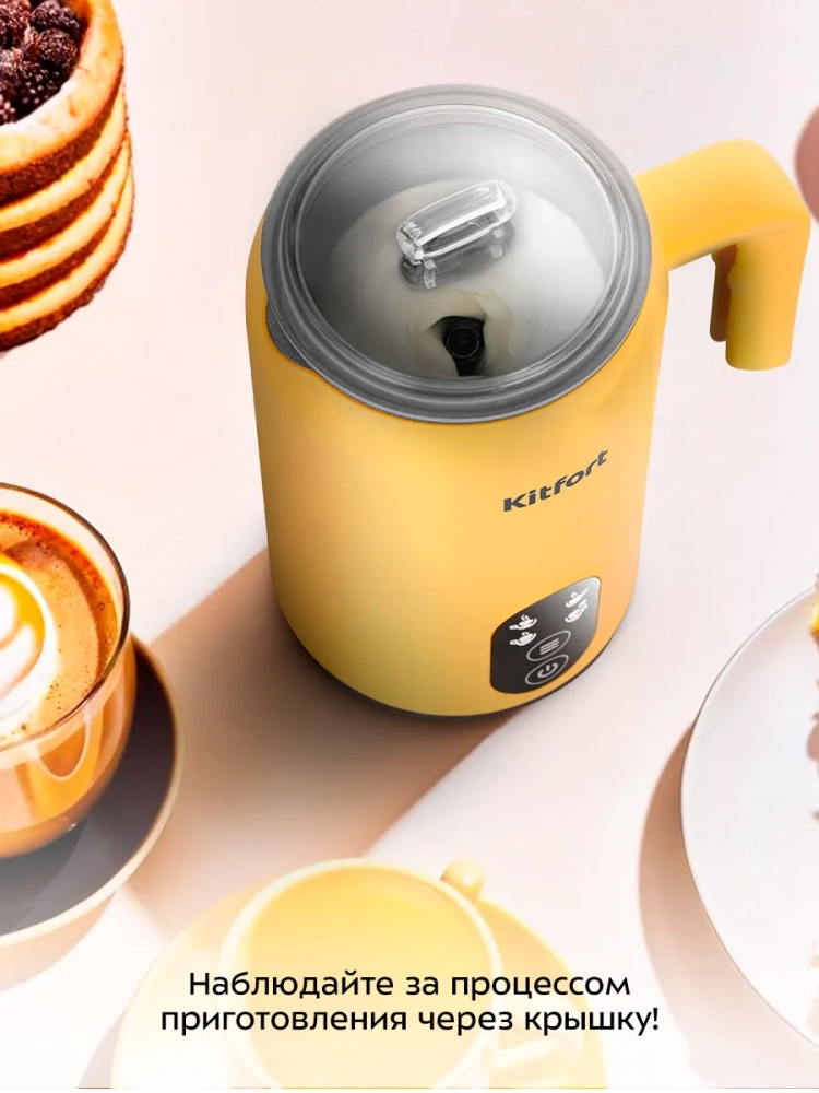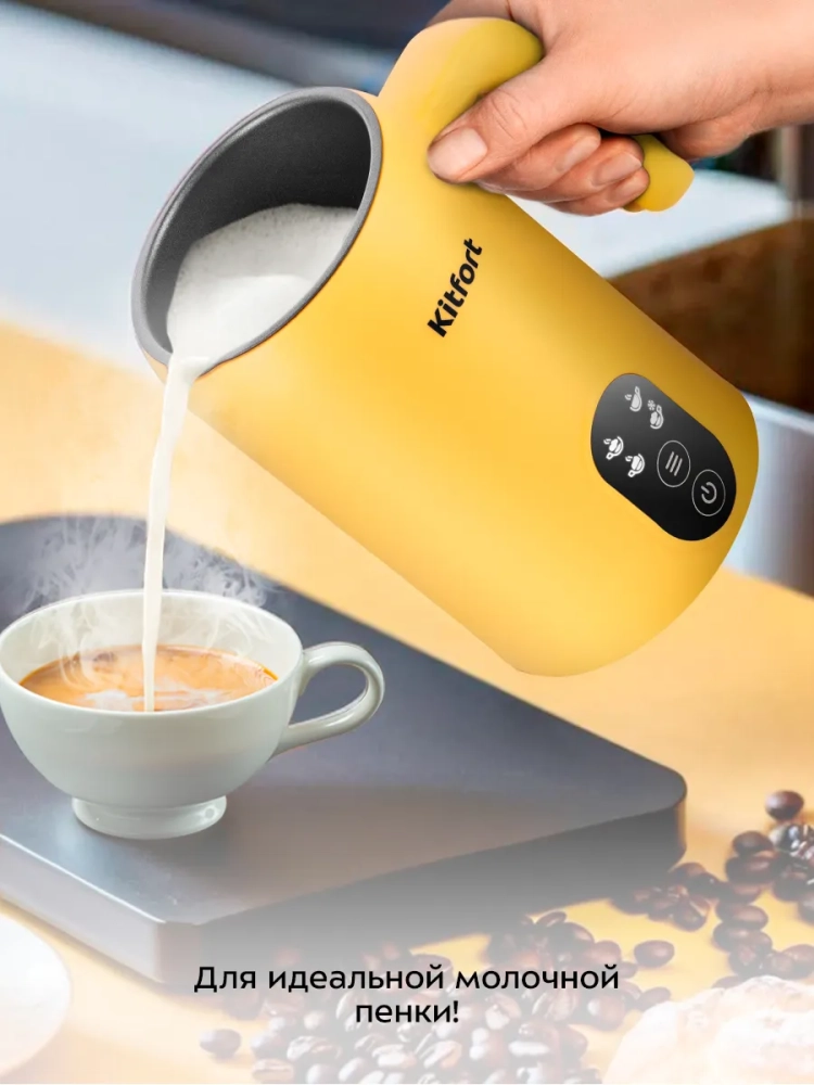 Капучинатор Kitfort КТ-7504 — это устройство для приготовления молочной пенки, используемой для напитков на базе эспрессо: капучино, латте и латте макиато. Прибор работает в 4 режимах: воздушная пенка с нагревом, смешивание с нагревом, вспенивание без нагрева и плотная пенка с нагревом.