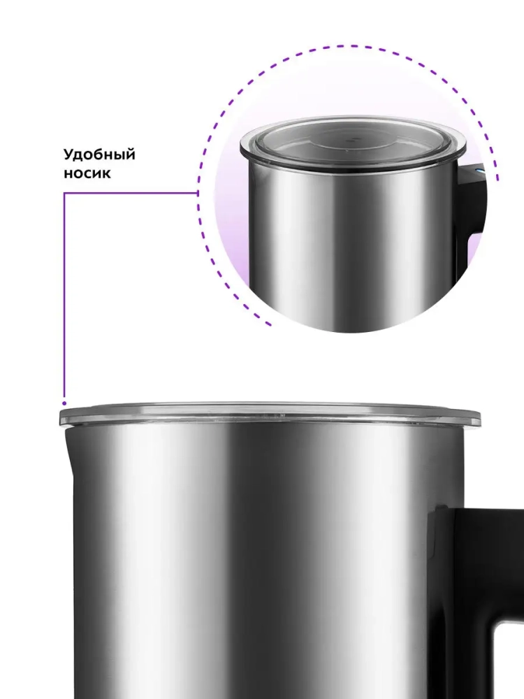 Капучинатор Kitfort КТ-762 - это устройство для приготовления молочной пенки, используемой для напитков на базе эспрессо: капучино, латте и латте макиато. Прибор работает в трех режимах: горячее и холодное вспенивание и смешивание с подогревом. Капучинатор автоматически отключается, когда процесс вспенивания или смешивания выполнен. В комплекте 2 насадки: для вспенивания и cмешивания. Через прозрачную крышку можно наблюдать за приготовлением. Капучинатор - идеальный выбор для тех, кому не хочется осваивать процесс самостоятельного вспенивания молока, следить за температурой, добиваться плотной однородной пены. Достаточно наполнить капучинатор нужным количеством молока и нажать кнопку. Через несколько минут холодная или горячая молочная пена готова. Так же в капучинаторе можно готовить какао и смешивать жидкости.