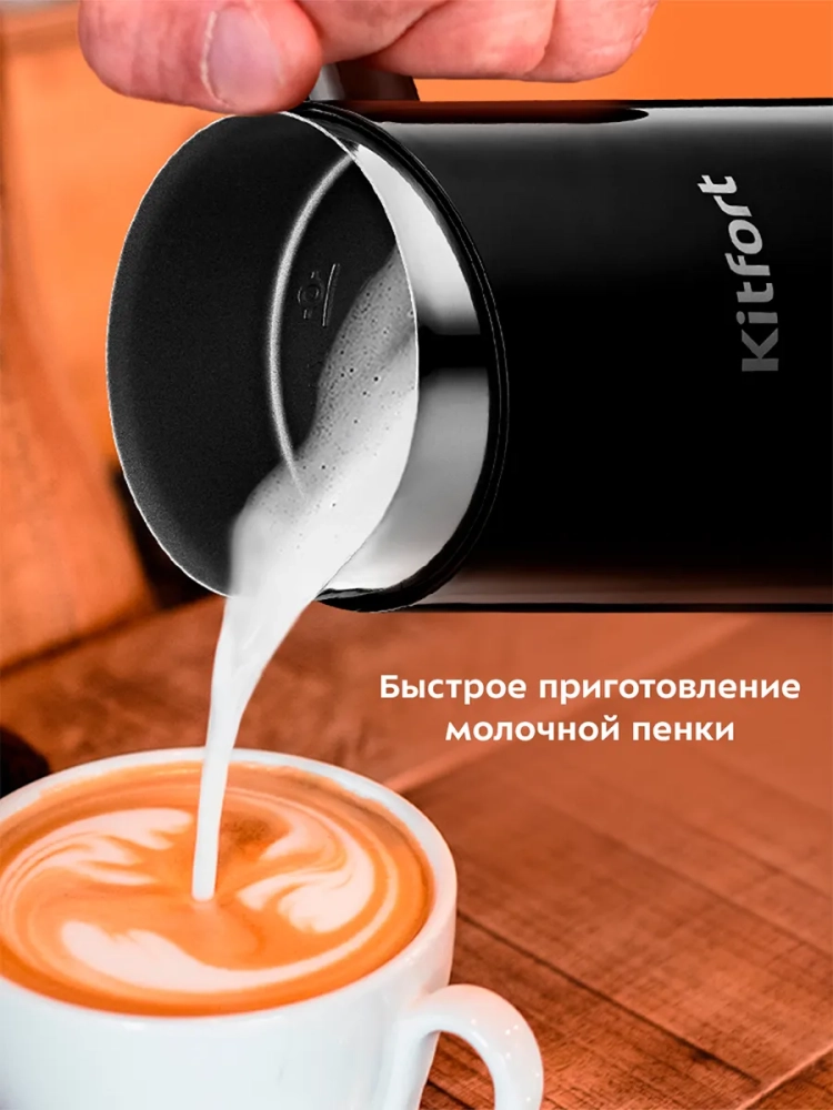 Капучинатор Kitfort КТ-780 — это устройство для приготовления молочной пенки, используемой для напитков на базе эспрессо: капучино, латте и латте макиато. Прибор работает в четырех режимах: легкая и густая пенка, смешивание с нагревом и взбивание без нагрева. Капучинатор автоматически отключается, когда процесс взбивания или смешивания выполнен. Также вы можете остановить процесс приготовления вручную. Управление осуществляется с помощью единственной кнопки на корпусе. Через прозрачную крышку можно наблюдать за приготовлением. Капучинатор — идеальный выбор для тех, кому не хочется осваивать процесс самостоятельного взбивания молока, следить за температурой, добиваться вручную плотной однородной пены. Достаточно наполнить капучинатор нужным количеством молока и выбрать режим. Через несколько минут холодная или горячая молочная пена готова. Так же в капучинаторе можно готовить какао и смешивать жидкости.